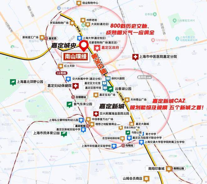 11号线km,嘉闵线嘉戬公路站(在建中,具体以政府规划为准)直线km。双线轨交,高效通勤往来,一线直抵真如、徐家汇、前滩等CBD商圈。车行近享上海绕城、沪嘉高速、嘉闵高架及沪宜公路、沪翔高速等纵横路网,畅享虹桥枢纽及国家会展中心。