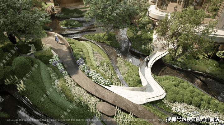 住宅组团如“浮岛花园”悬浮于城市之上,实现真正意义上的人车分流与立体绿化,营造静谧的归家动线,是城市核心地段最珍贵的自然松弛,同时基于全大户型社区营造出纯粹的社区圈层;
