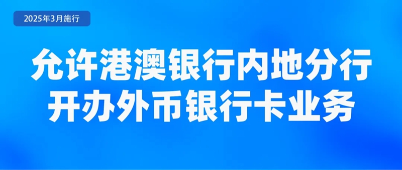 国家金融监督管理总局印发《关于港澳银行内地分行开办银行卡业务有关事项的通知》,自2025年3月1日起实施,允许港澳银行内地分行开办外币银行卡业务以及对除中国境内公民以外客户的人民币银行卡业务;明确港澳银行内地分行开办借记卡业务适用报告制,开办信用卡业务适用审批制。