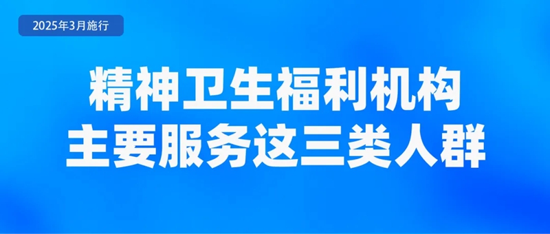民政部、国家卫生健康委出台的《精神卫生福利机构管理办法》,自2025年3月1日起施行。办法进一步规范精神卫生福利机构服务。办法对精神卫生福利机构的服务对象范围进行了细化,主要有3类:一是法定收治对象。收治照料特困人员中的精神障碍患者是精神卫生福利机构应当履行的法定职责。二是优先收治对象。在法定收治对象应收尽收的前提下,优先收治流浪乞讨、最低生活保障等社会救助对象中的精神障碍患者等。三是可以收治对象。有条件的机构可以收治其他社会患者。精神卫生福利机构主要提供生活照料、康复、医疗等服务。